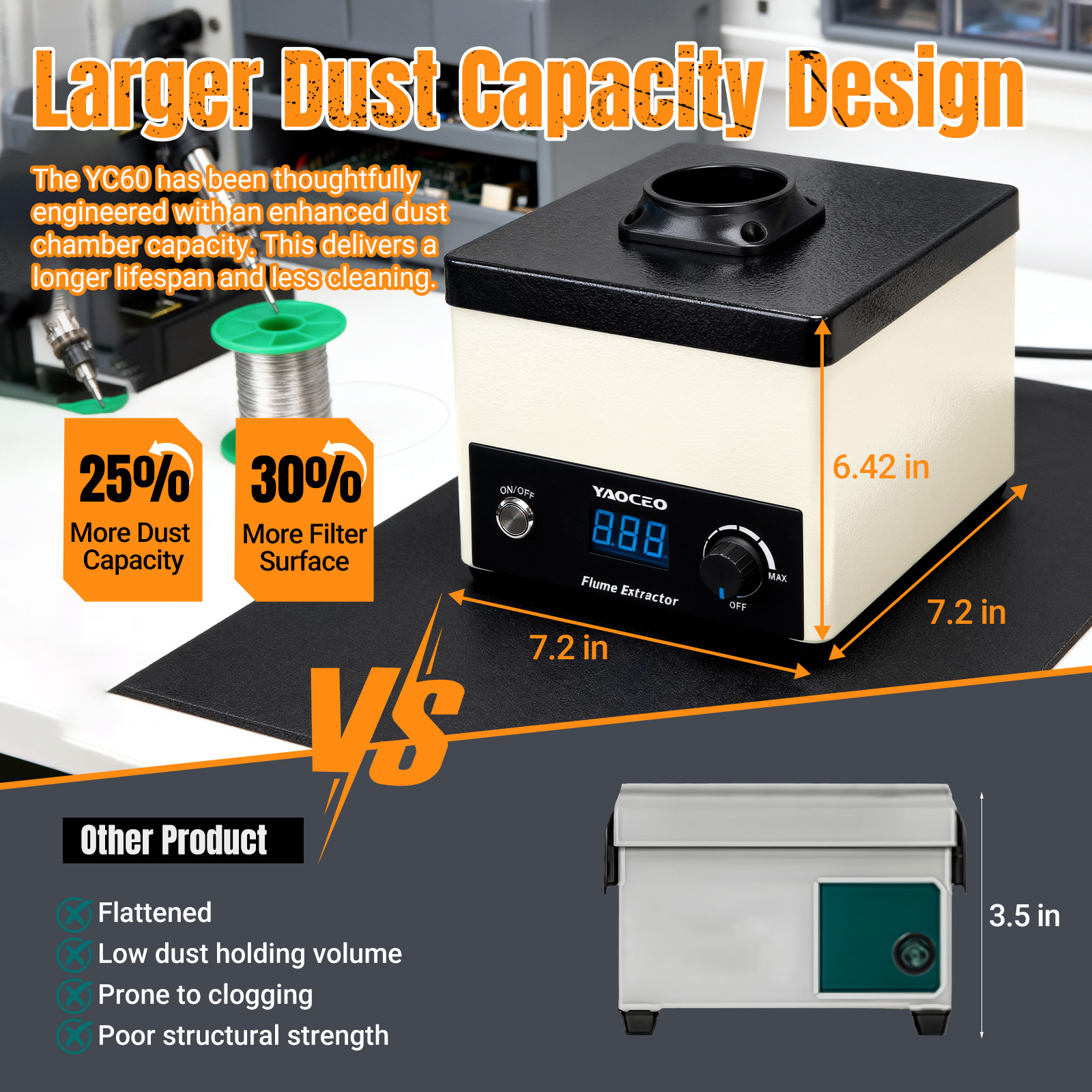 YC60 Solder Fume Extractor, High Power Solder Smoke Absorber with Digital Display & Speed Control, 3-Stage Filtration (HEPA+Carbon), Fume Extractor for Desktop Soldering,Welding-Includes 5 Pre-Filters